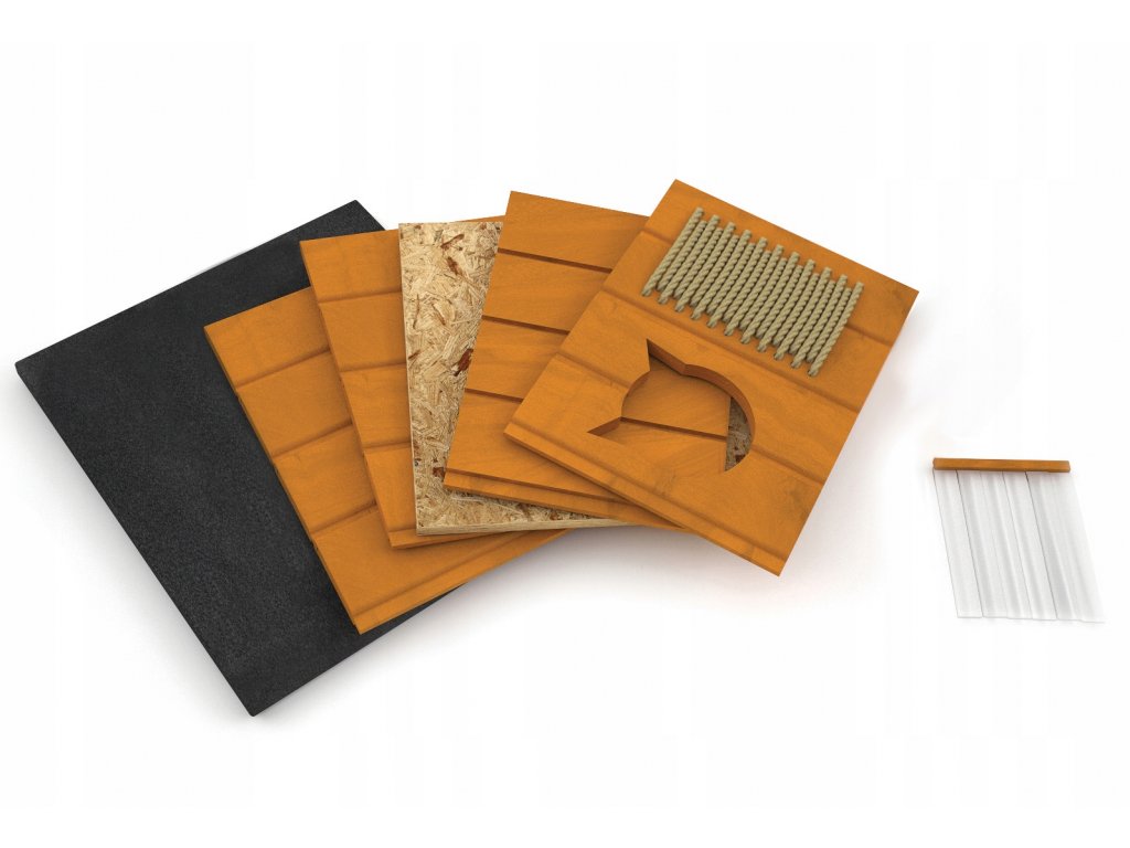 Odnímateľná strecha je vyrobená z preglejky, pokrytá dechtovým papierom, ktorá zabezpečuje ochranu domčeka proti daždu.