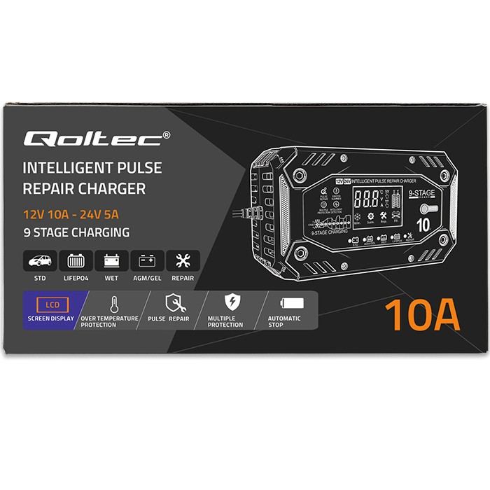 Inteligentná nabíjačka Qoltec prostredníctvom 9-stupňového automatického režimu nabíjania s integrovaným stupňom odsírenia a údržby poskytuje výnimočnú ochranu batérie a umožňuje dosiahnuť najlepší výkon.