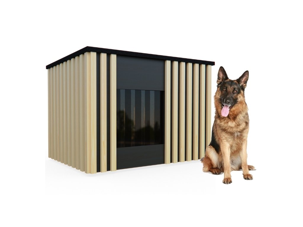 Psia búda XXL MODERN ELEGANCE – zateplená, drevená, so závesom