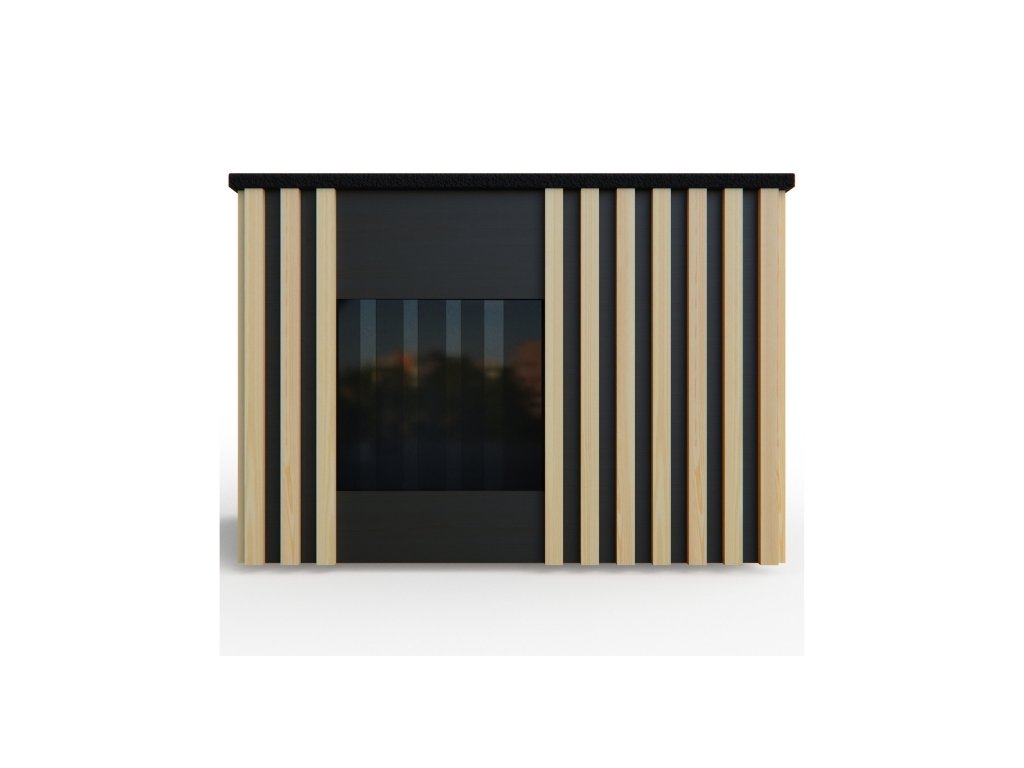 Jej konštrukcia je vyrobená z borovice a z prednej strany je obitá kvalitnými bukovými lištami, ktoré dávajú búde moderný vzhľad.
