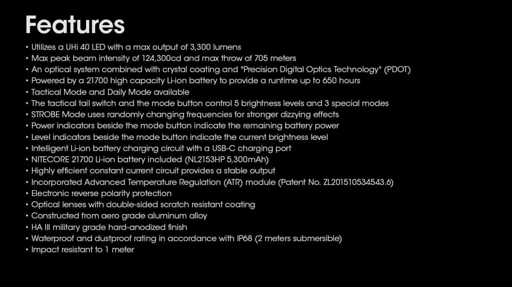 – Používa vysoko kvalitnú LED diódu NiteLab UHi 40 LED