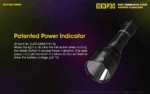– Keď je svietidlo vypnuté, stlačte súčasne koncový prepínač a prepínač režimov, vtedy sa začne indikácia napájania. Modrý indikátor napájania umiestnený pod prepínačom režimov bude blikať a ukazovať stav napätia batérie s presnosťou ± 0,1 V. Po tomto procese sa svietidlo automaticky zapne.