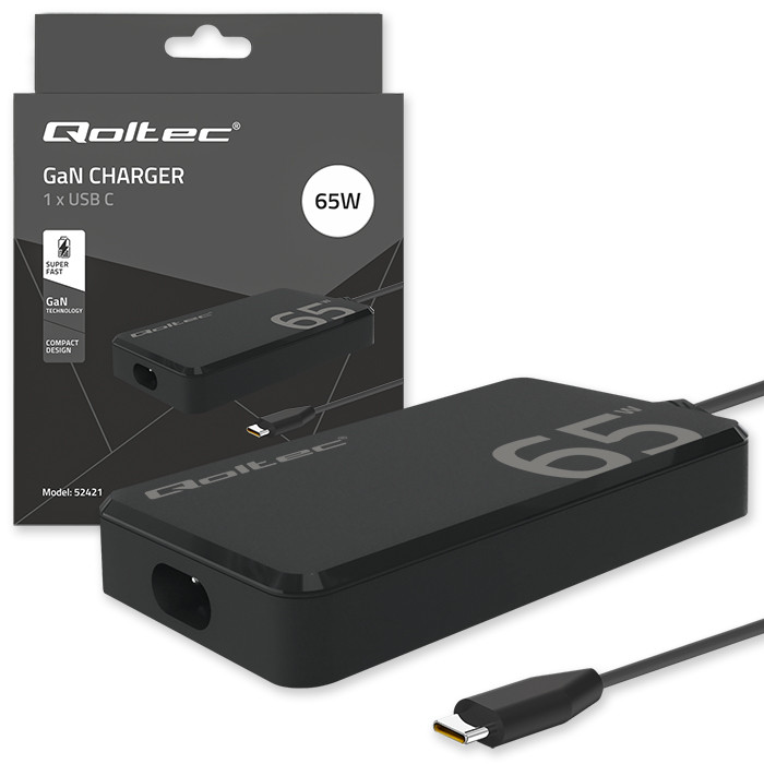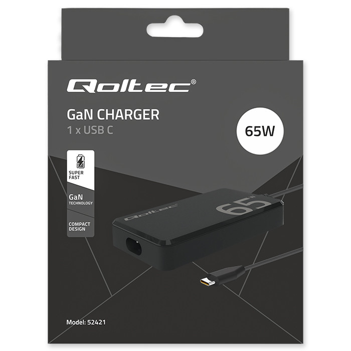 Nabíjačka Qoltec využíva modernú technológiu GaN (nitrid gália) – moderný polovodičový materiál, ktorý z hľadiska energetickej účinnosti výrazne prekonáva tradičný kremík. Vďaka tomu zariadenie poskytuje maximálny nabíjací výkon za kratší čas a zároveň znižuje energetické straty a emisie tepla. Okrem toho podporuje štandard USB-C Power Delivery, ktorý zabezpečuje rýchle a presné nabíjanie zariadení podľa ich požiadaviek. Dokáže nabiť batériu už za 30 minút na približne 60 %. Celkovo to znamená rýchlejšie nabíjanie, vyššiu účinnosť a nižšiu spotrebu energie.
