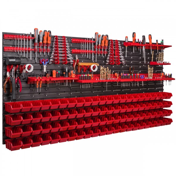Sestava stěny na nářadí 1728×780 mm – 88 boxů s držáky obsahuje: