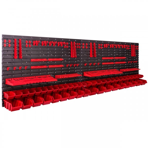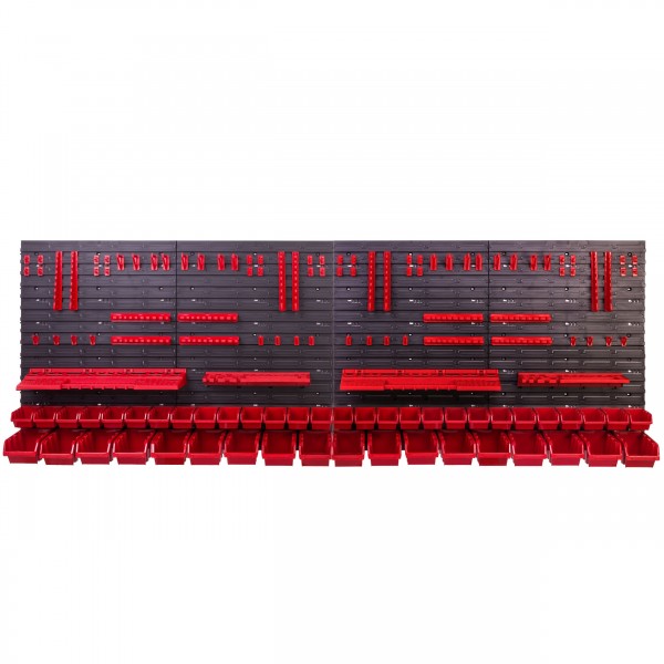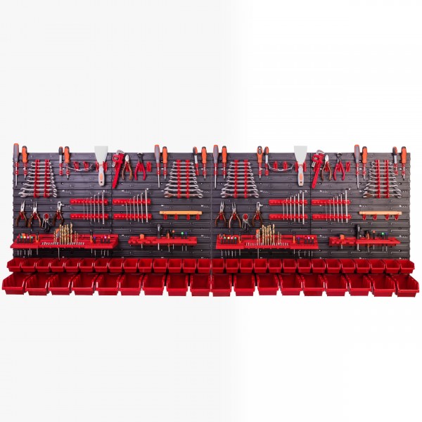 Sestava stěny na nářadí 2300 × 780 mm – 46 boxů s držáky obsahuje: